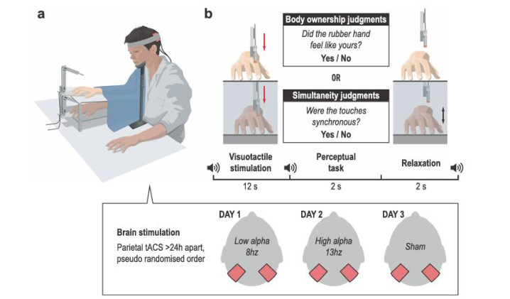 近日,瑞典卡罗林斯卡学院的研究团队在 Nature Communications 上发表了一项研究,终于揭开了这个谜底。团队发现,测量大脑顶叶皮层的阿尔法波频率(Alpha waves),就能预测一个人在橡胶手实验中的表现。