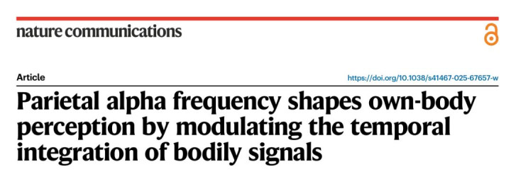 图 | 团队论文:顶叶皮层阿尔法波频率通过调节身体信号的时间整合来影响自身身体感知(来源:Nature)